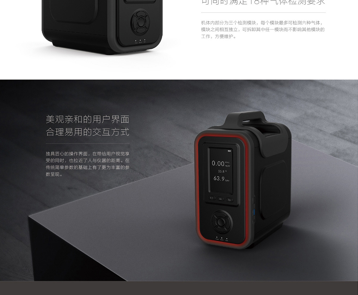 | 模塊化結構: | 機體內部分為三個檢測模塊,每個模塊最多可選配檢測六種氣體,一共可選配檢測十八種氣體,模塊之間的獨立性最大程度上解決了氣體之間相互干擾的難題 | |