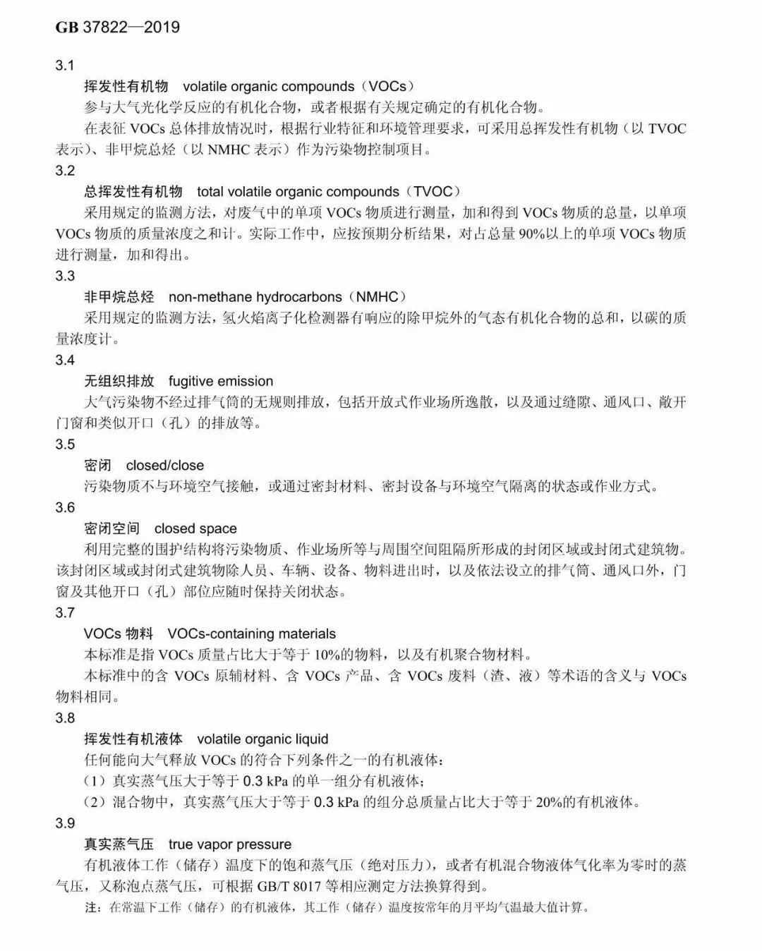 標準中的揮發性有機物(VOCs)是指參與大氣光化學反應的有機化合物、或者根據有關規定確定的有機化合物。在表征VOCs排放情況時,根據行業特征和環境管理要求,可采用總揮發性有機物(TVOCs)、非甲烷總烴(NMHC)作為污染物控制標準。