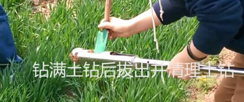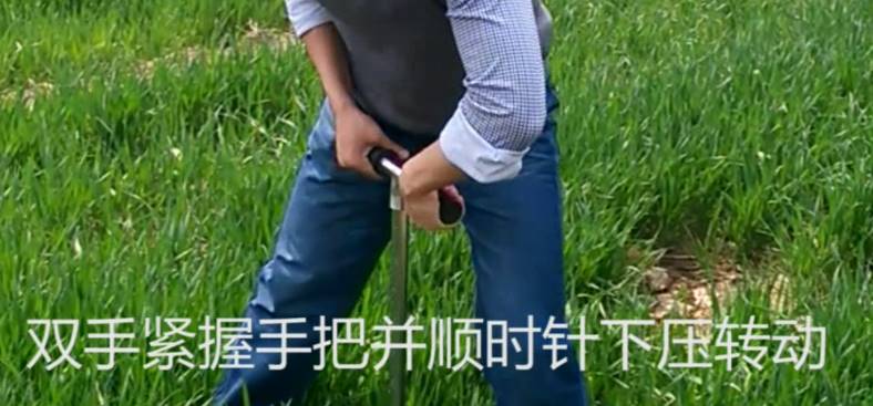 1. 用取土鉆打孔,雙手緊握手把并順時針下壓轉動;
