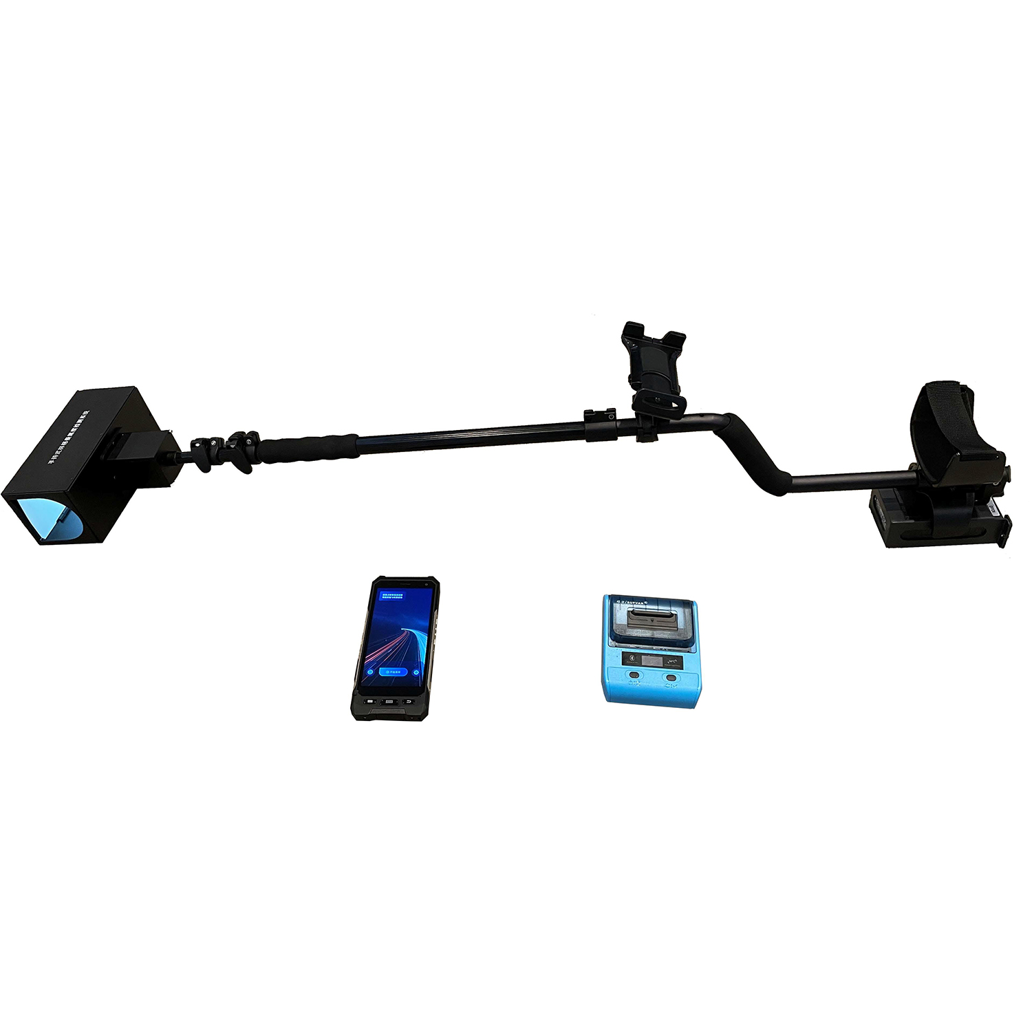 手持式林格曼黑度儀由:三防 PDA、黑煙采集腔單元、便攜式藍牙打印機、人體工程學采集桿、適配器、收納箱等部分組成。PDA 內嵌林格曼黑度識別分析軟件,僅需要 1 秒鐘就可以分析出尾氣的林格曼黑度值,